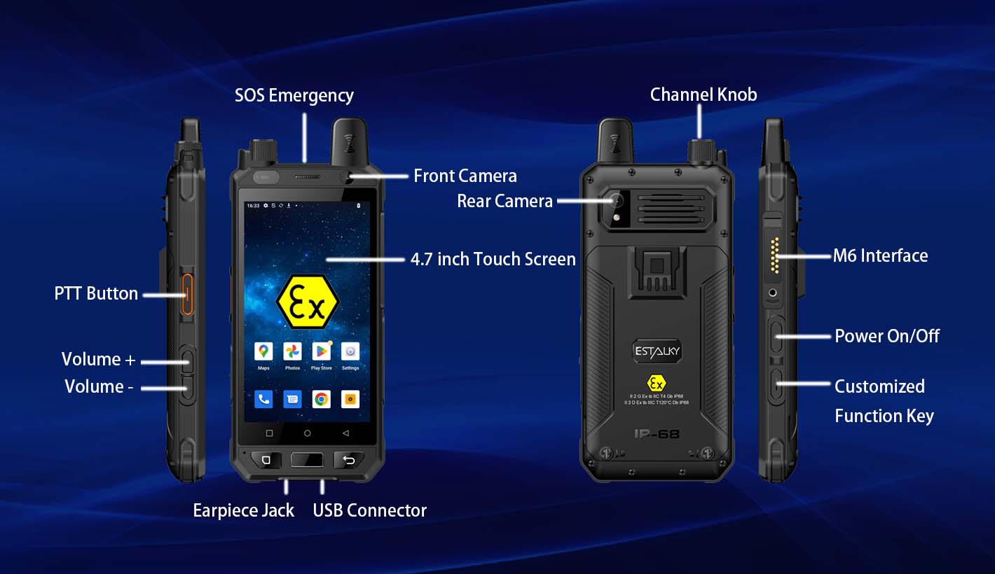 PTT Key / Volume UP / Down Key / Function Key / SOS Key / Power Key/Channel knob/Fingerprint |